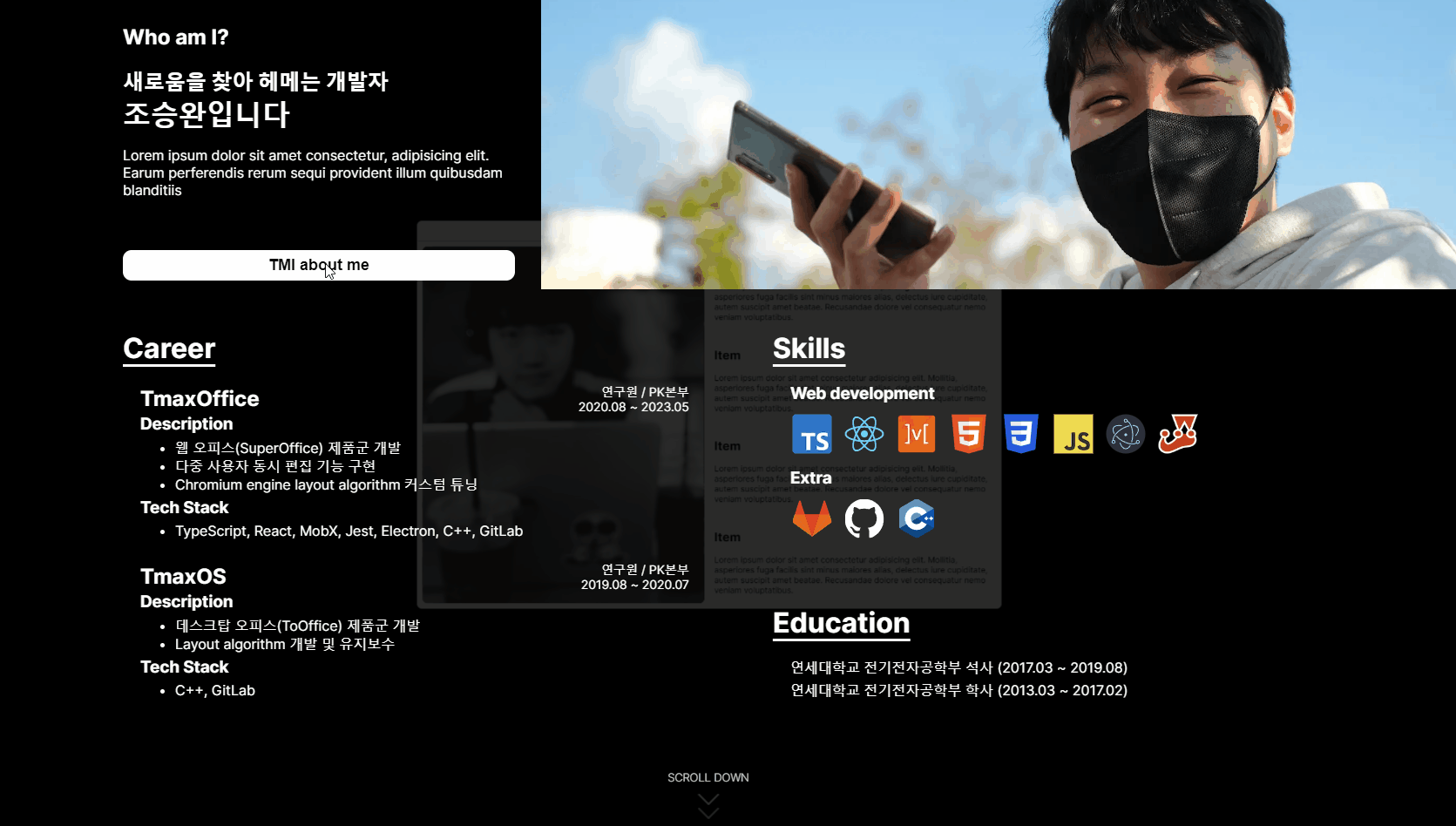 | Next.js 포트폴리오 페이지 제작기 - 3. Intro part (0) | 2023.07.28 |