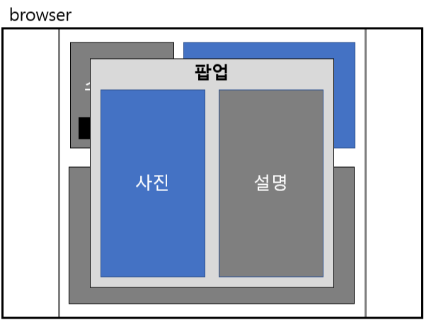 다만, 실제로 새로운 팝업 창을 띄우는 식이 아닌 화면 상 Component를 보여주는 형식으로 구현하였다.