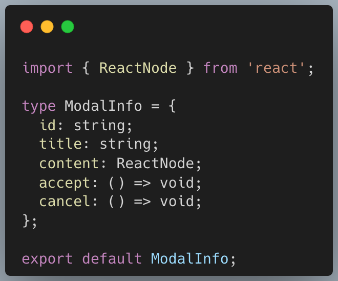 우선 stack에 저장할 모달 정보 객체 타입은 다음과 같이 정의했다.